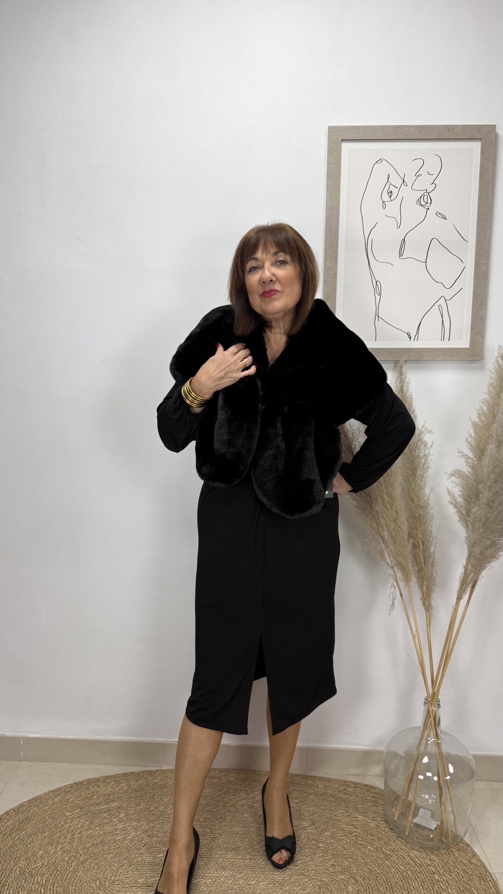 Estola de Pelo Antideslizante Negro