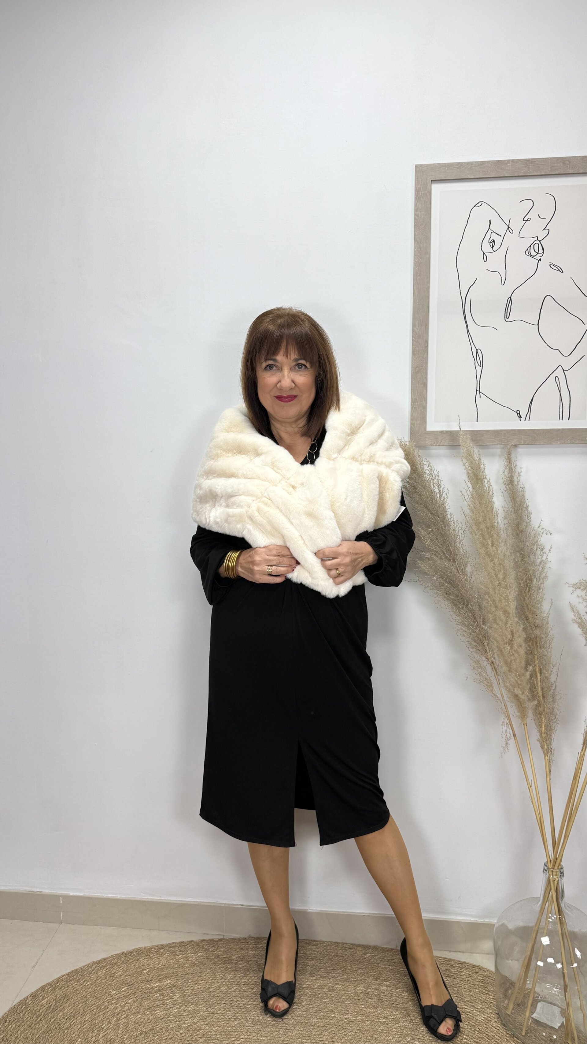 Estola de Pelo Antideslizante Blanco Roto