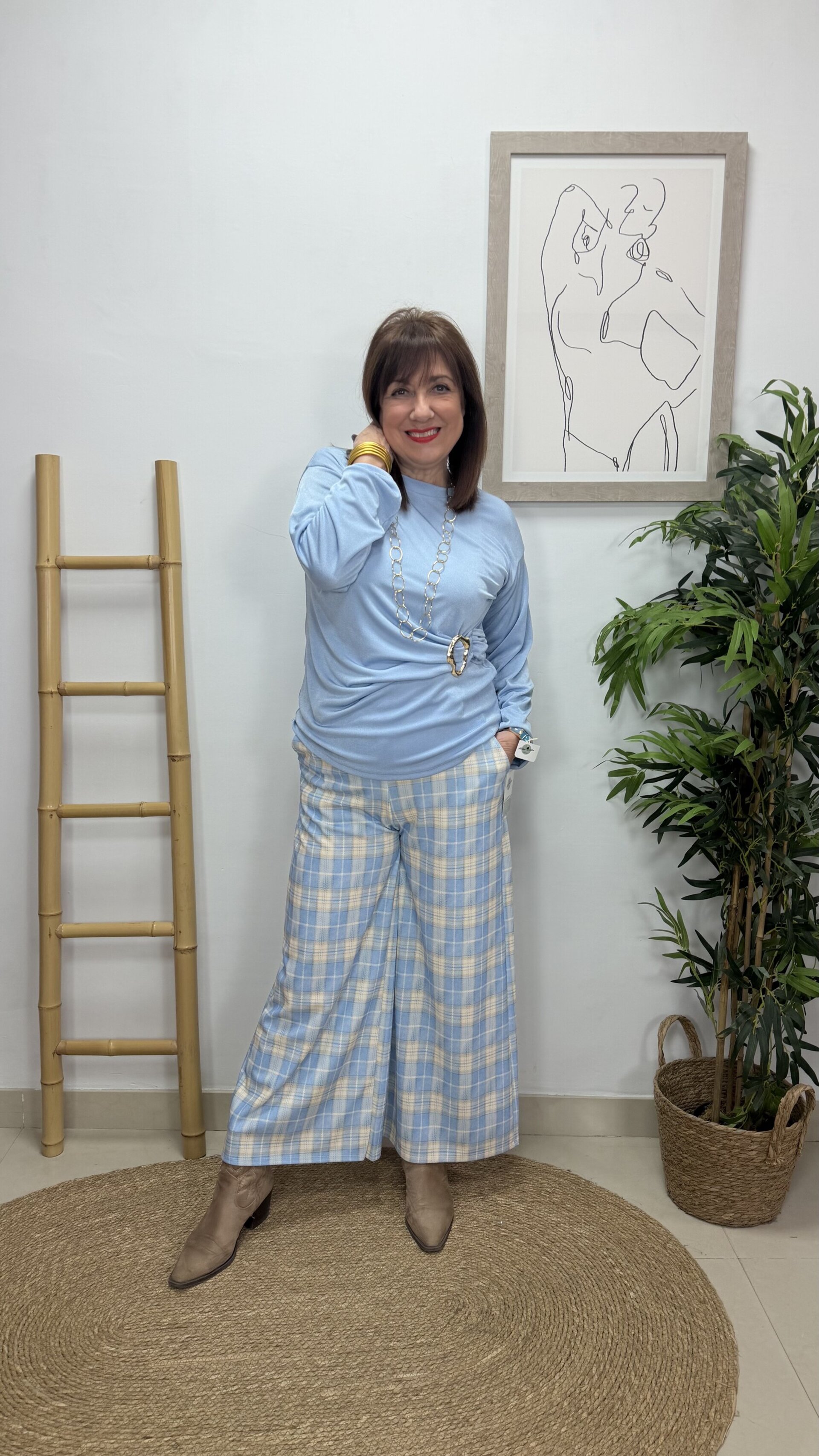 Pantalón Cuadros Celeste